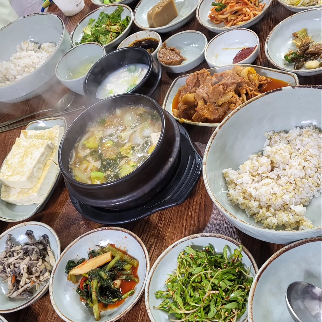 이곳의 또 다른 매력은 바로 ‘맛’입니다. 🤤 푸짐하게 한 상 차려지는 보리밥 정식은 신선한 나물과 고추장, 그리고 윤기가 자르르 흐르는 제육볶음의 환상적인 조화를 자랑합니다. 👍🏼 짭짤한 제육볶음을 쌈 채소에 푸짐하게 싸서 한 입 가득 넣으면, 절로 미소가 지어질 거예요. 😁 특히, 구수한 된장찌개는 진한 국물 맛이 일품이라 밥 두 공기는 뚝딱 비우게 만든답니다. 🍚 반찬 하나하나 손맛이 느껴져서 어르신들도 정말 좋아하실 맛이에요. 🥰